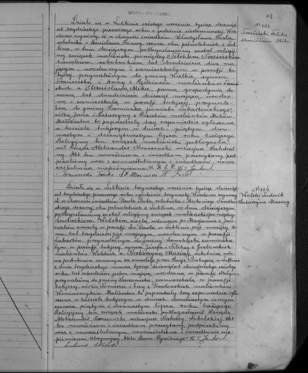 Записи о венчании и крещении в римско-католическом костеле г.Люблина. Источник https://www.familysearch.org/search/catalog/results?count=20&placeId=67633&query=%2Bplace%3A%22Poland%2C%20Lublin%2C%20Lublin%2C%20Lublin%22&subjectsOpen=335096-50,1405007-50