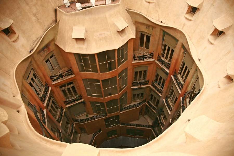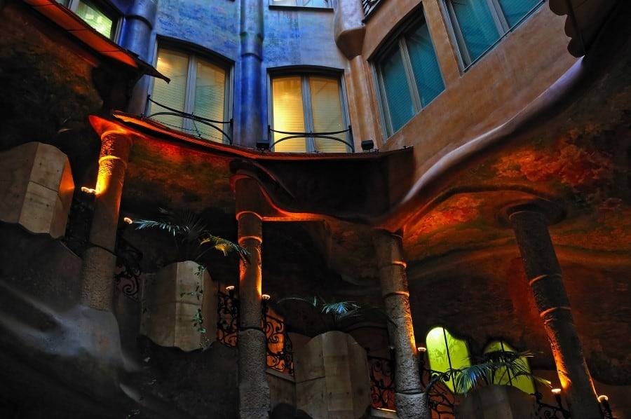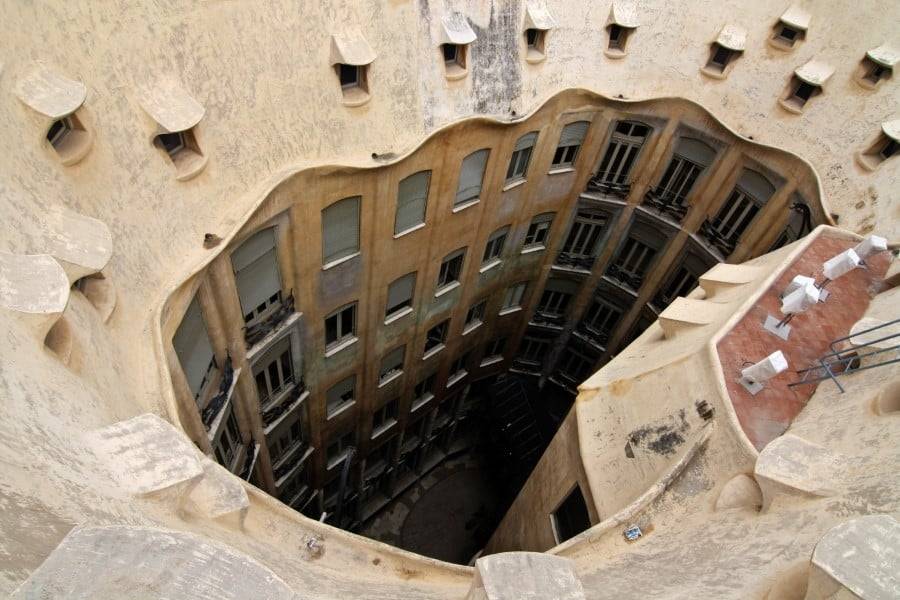Безусловно, архитектура дома Мила Каса отличается элементами, характерными для творчества Антонио Гауди. Одна из таких особенностей представлена внутренними дворами-патио: двумя эллиптическими и одним круглым. Это необходимо для того, чтобы в жилые помещения постройки проникал дополнительный солнечный свет и воздух.
