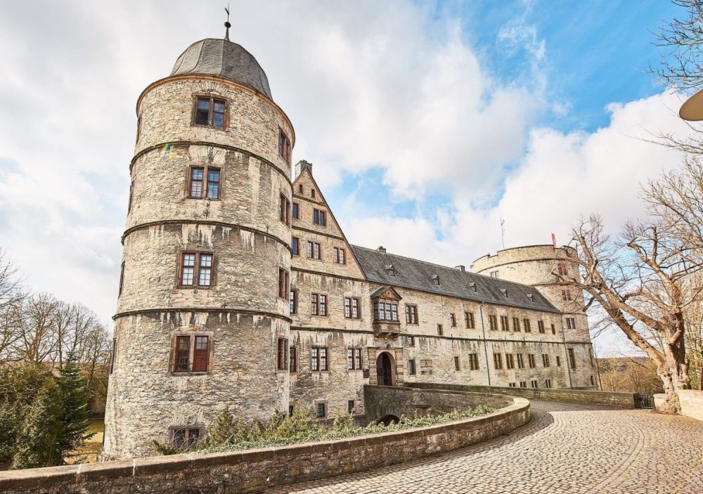Замок Вевельсбург находится в Германии, на землях Северного Рейна Вестфалии, недалеко от Падерборна. Замок выполнен в ренессанском стиле. Вевельсбург является массивным сооружением, находящимся на вершине в окружении деревьев Тевтобургского леса. Возведённый во времена гуннов, замок по своей форме напоминал французскую крепость Монсегюр. Вевельсбург окружён многочисленными башнями и прочной стеной. Внутри замка много двориков и даже мостов. Буквально рядом с замком располагается лесное святилище Экстернштайне. В скалах этого места можно увидеть исторические и святые барельефы. На вершине скалы расположена молельня. Ежегодно тысячи паломников ездят к этому месту.