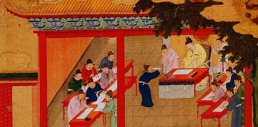 С 800-х годов до н.э. в Китае организуются го сюэ (государственные школы) и сян сюэ (местные школы), основанные отставными чиновниками и учеными. Каждая из этих типов сыграл значительную роль в продвижении китайской культуры. Кэцзюй (система экзаменов на государственную службу), основанная на конфуцианском понятии меритократии, начала развиваться около 400-х годов, достигнув пика во времена династии Тан (618–896). Эта система оставалась фактически единственным путем к государственным должностям для образованной элиты Китая более 1000 лет.