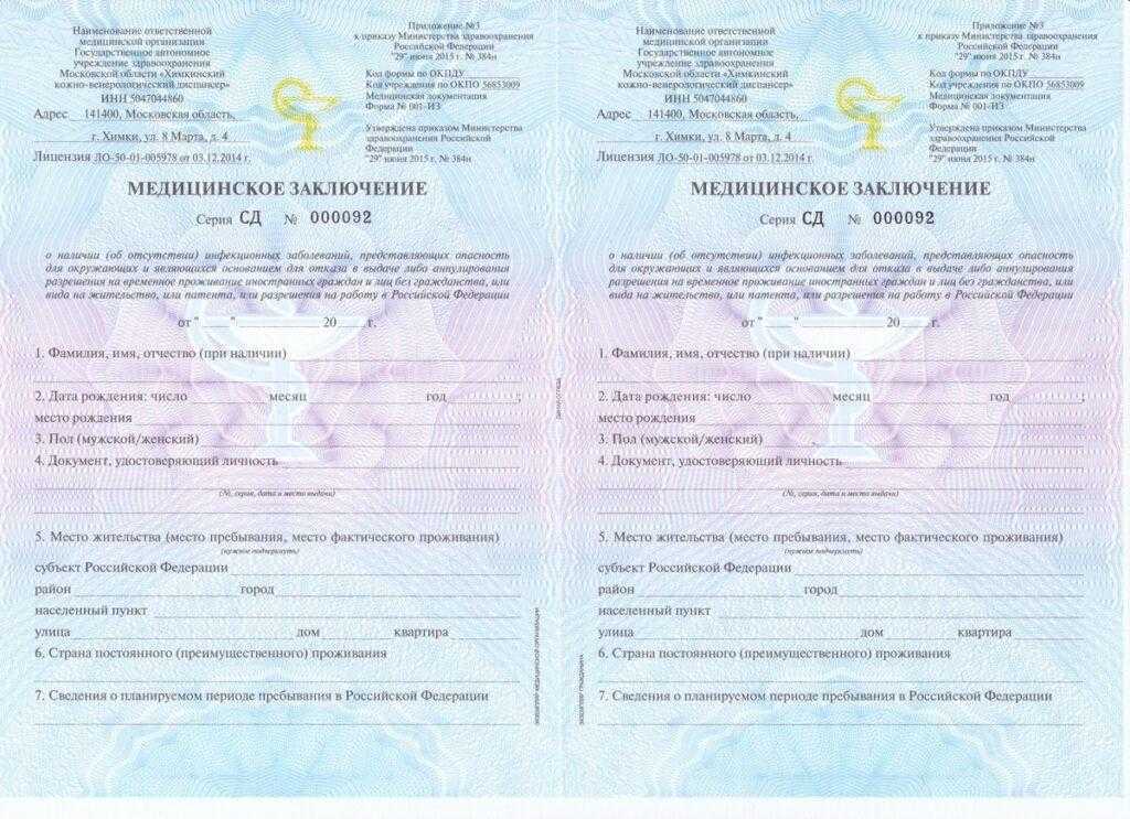 - медсправка о медицинском освидетельствовании иностранного гражданина;