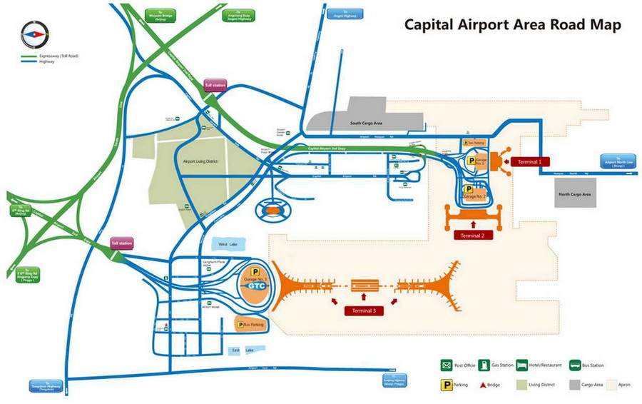 Аэропорт Пекина достаточно обширен, и в нем очень легко заблудиться. Чтобы этого не случилось, следует внимательно изучить схему расположения всех терминалов. В зале каждого из них имеется информационный стенд, на котором можно почерпнуть информацию о месторасположении всех служб конкретного здания.