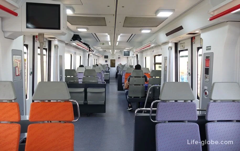 Электрички (поезда) курсируют ежедневно. Стоимость проезда начинается от 8,40 евро, время в пути от 39 минут до 2 часов 13 минут.