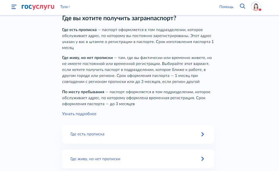 Загранпаспорт без постоянной регистрации на портале Госуслуги