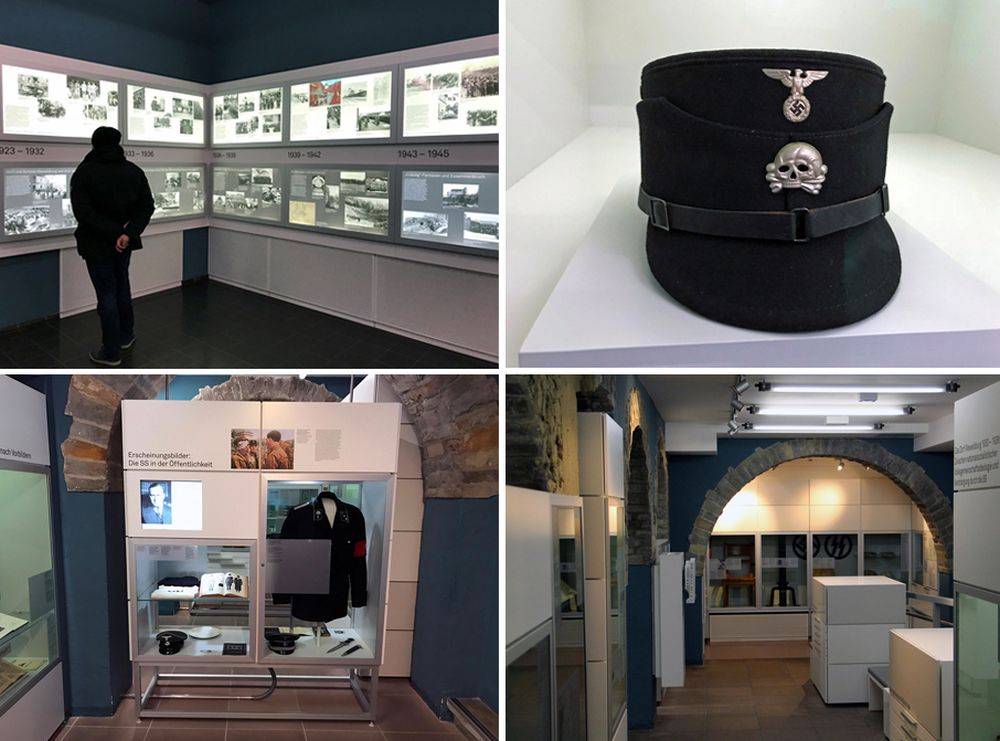 Экспозиция, названная «Место жертв и преступников. Идеология и террор СС», представляет подлинные документы, раскрывающие преступления «Чёрного ордена» Третьего рейха в их развитии. Документы рассказывают о послевоенной жизни главных фигурантов и узников концлагеря, которым посчастливилось уцелеть.