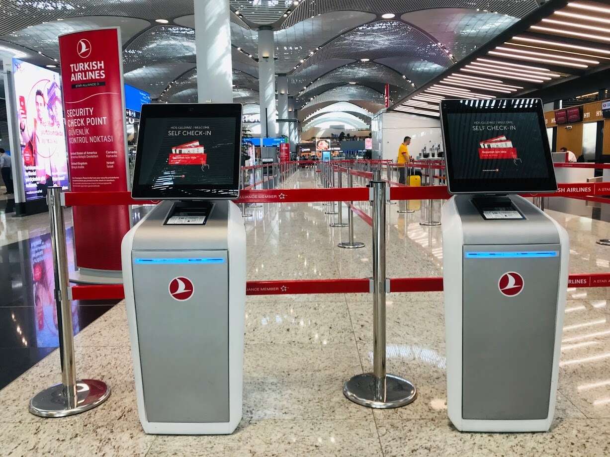 Также в зоне вылета есть много терминалов для самостоятельной регистрации в аэропорту.