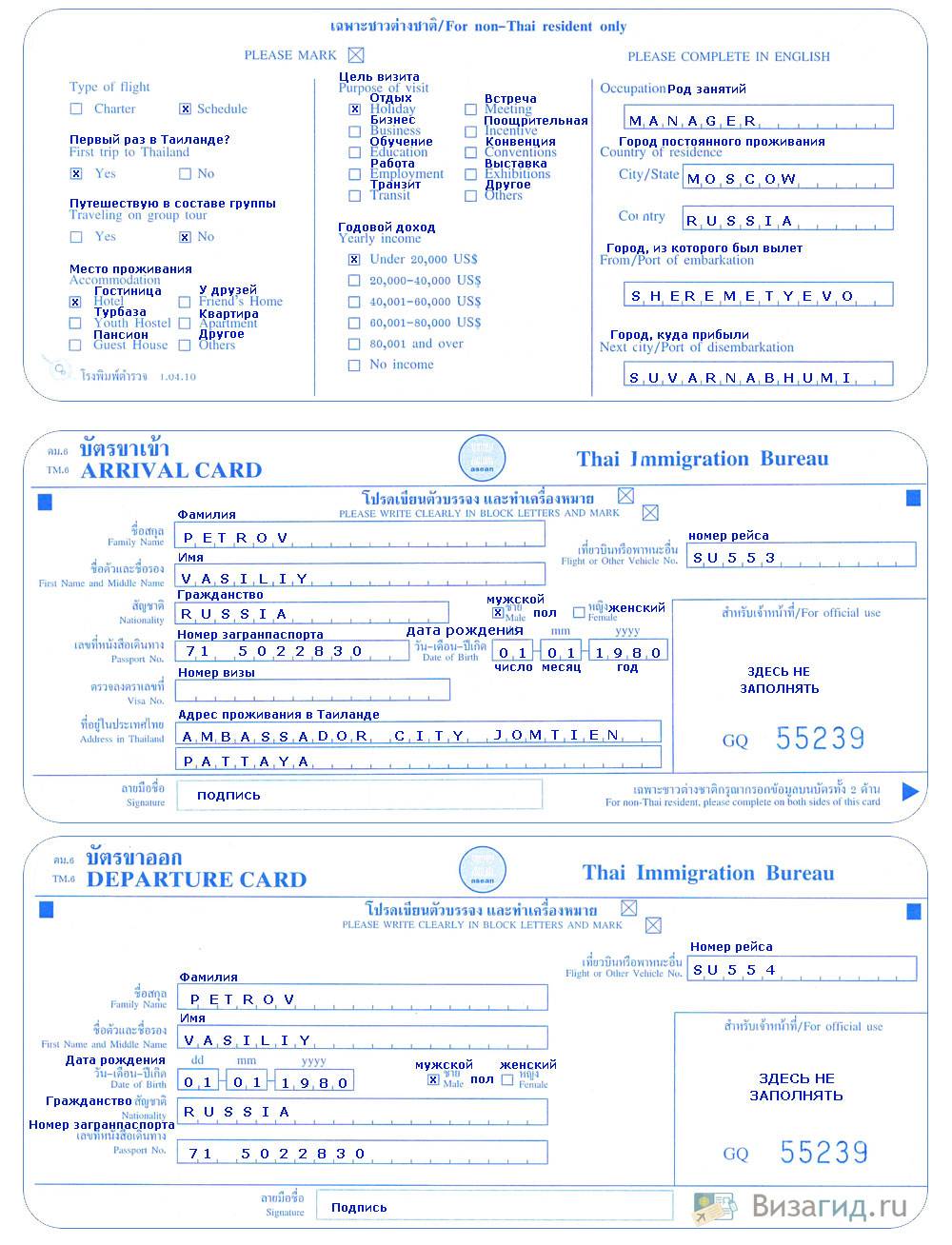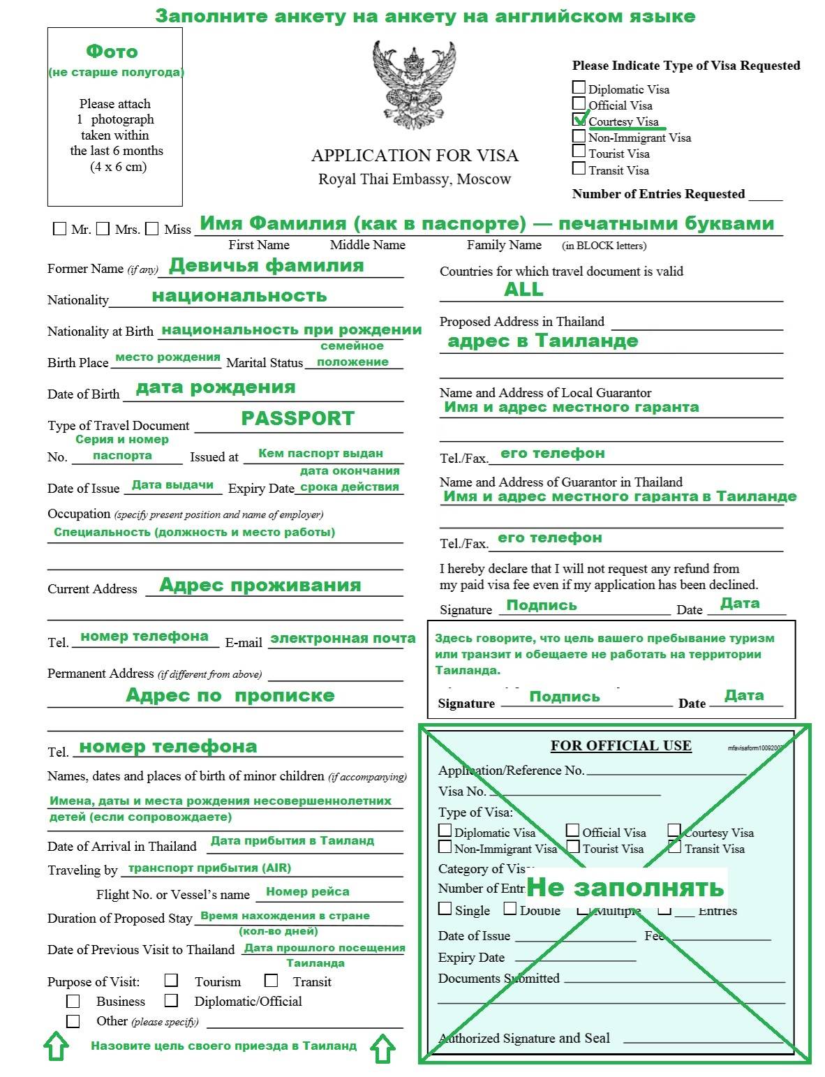 Образец заполнения анкеты визы по прилёту в Таиланд можно .
