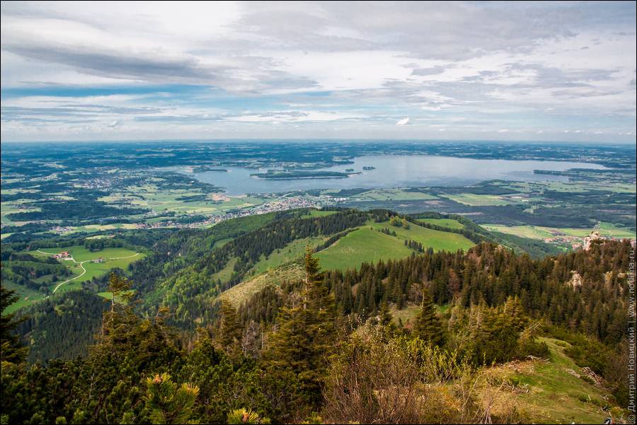 Вид с Фрауэнинзеля на Кимзее в юго-восточном направлении (Альпы)
