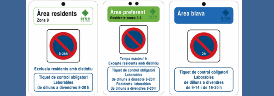 Обратите внимание, бесплатно тут можно оставлять транспортное средство в прибрежной местности только зимой, а летом это невозможно, плюс могут вызымать деньги за пользование, более длительный период. Оранжевая (naranja) и Зеленая (verde), в Барселоне еще ее называют “área preferent”