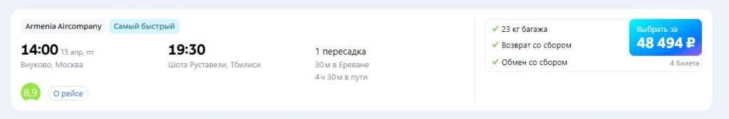 Полет с пересадкой в Армении будет самым быстрым, но стоит он на 20 тысяч дороже, чем через Беларусь. А разница во времени — всего-то 1,5 часа.