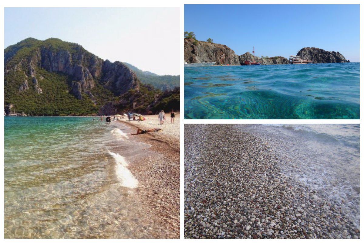 Об этом месте почти никто из приезжающих по путевкам «все включено» не знают. А зря. Это одно из самых красивых мест Турции, которое находится возле городка Каш. Если вы выберетесь из своего отеля на денек на этот пляж, то будете вознаграждены: такой синей воды, белоснежной гальки в окружении высоких скал больше на побережье Средиземного моря нет. Туристов здесь немного, потому что рядом нет крупных отелей и курортных городов. Как добраться до пляжа читайте в нашей прошлой статье.