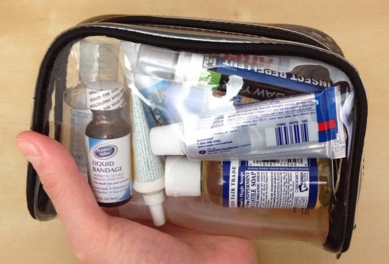 Жидкости должны быть в емкостях максимум по 100 мл, таких флаконов в расчете на одного человека должно быть максимум 10 в общем объеме 1 л. Их необходимо упаковать в отдельный пакет.