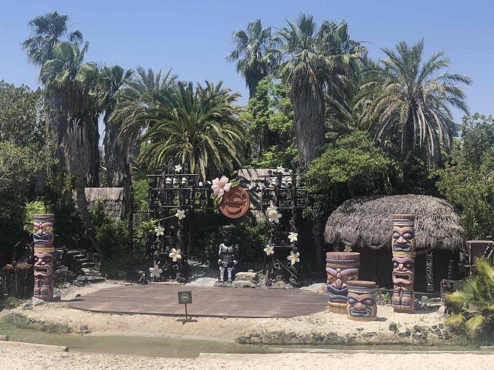 Красочное театрализованное шоу, аттракционы, кафе, оформление переносят посетителей в Полинезию.