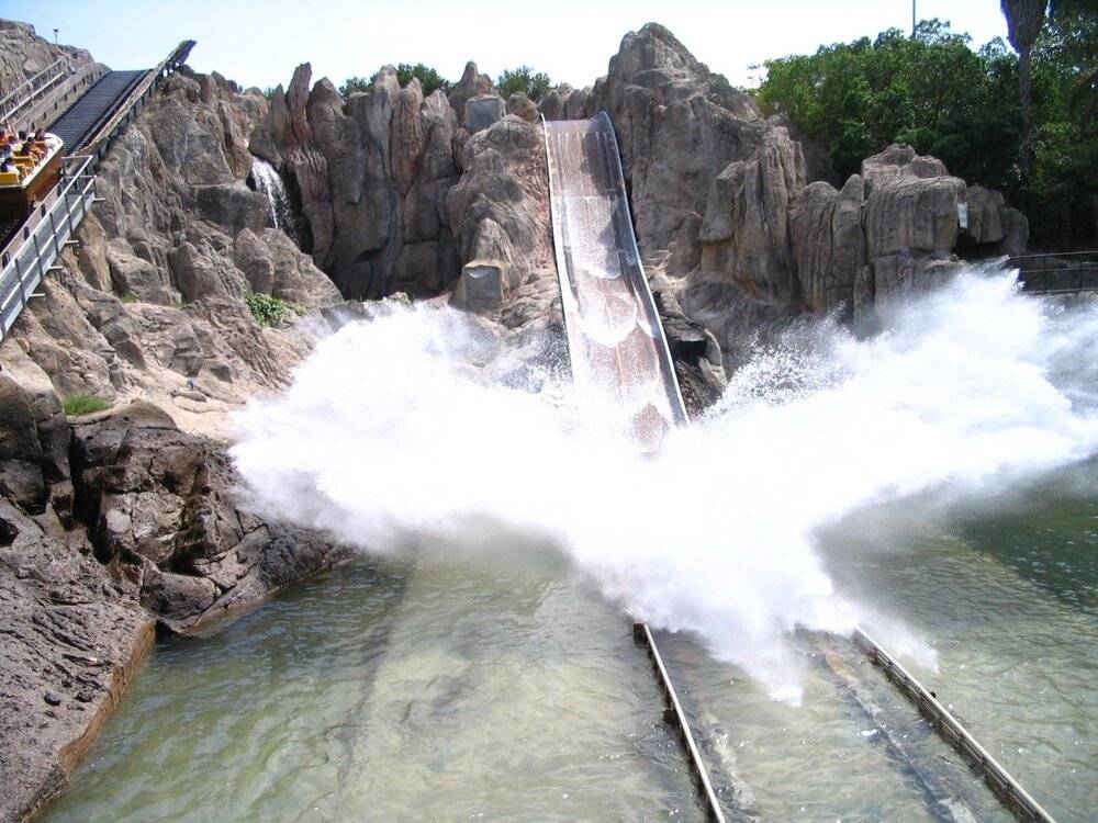 В Полинезии примечателен аттракцион Tutuki Splash, представляющий собою лодку, которая проплывёт в пещерах и съедет с двух спусков.
