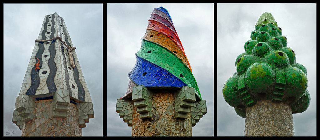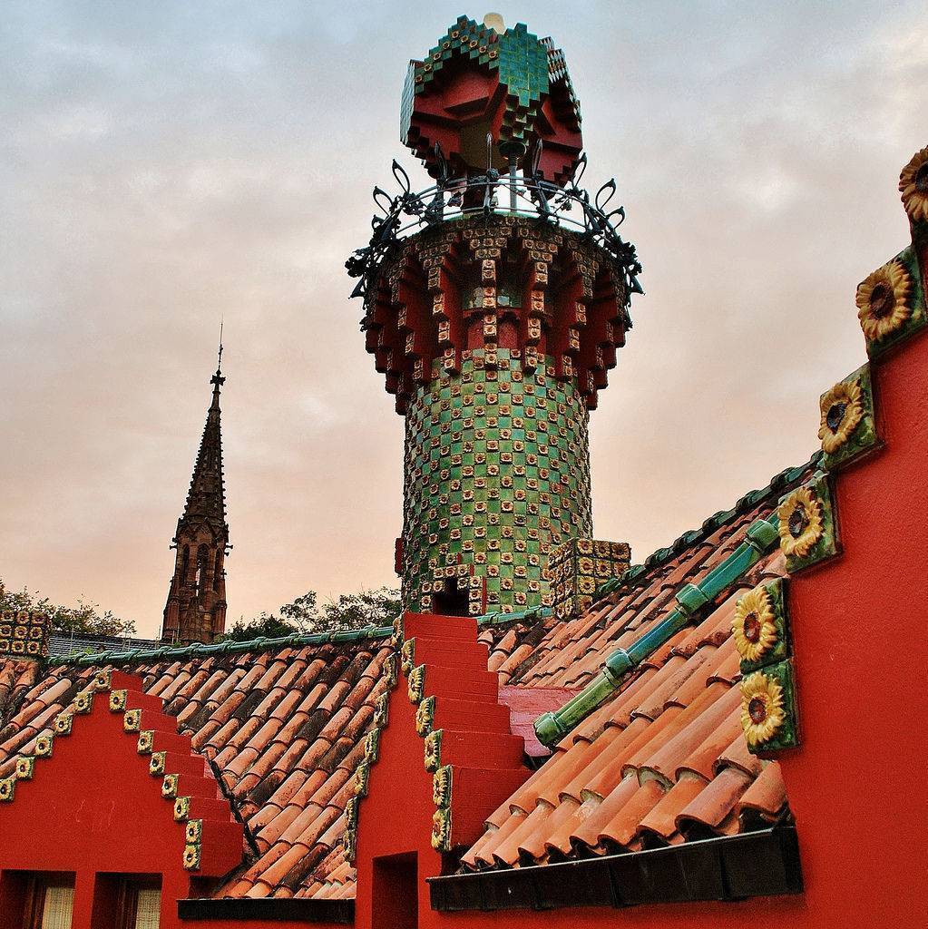 Архитектора и промышленника многое объединяло: они оба были родом из окрестностей Таррагоны, оба были фанатичными патриотами Каталонии. Обязательно зайдите во дворец; вряд ли вас оставят равнодушными камины, флюгеры в виде летучих мышей, параболические арки, неовизантийские гостиные, колонны-копья на втором этаже, разноцветные керамические дымоходы на крыше (по легенде, чтобы добиться нужного эффекта, Гауди разбивал предметы чрезвычайно дорогого лиможского сервиза).