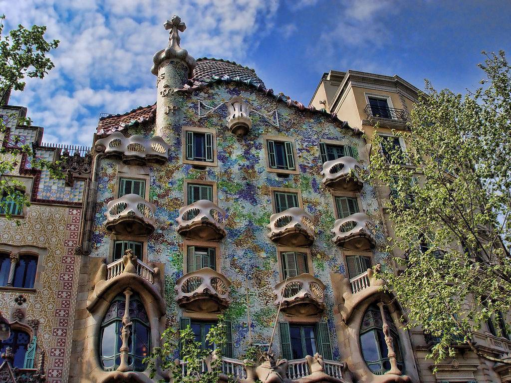 Архитектура модерна Гауди оставляет неизгладимое впечатление. Внешний вид дома восхитит кого угодно. Сочетание множества цветов, изгибающиеся формы фасада и балконы, словно черепа – все это сочетается в этой постройке. Его называют «Дом из костей» или «дом-дракон».