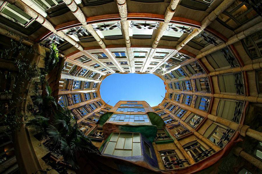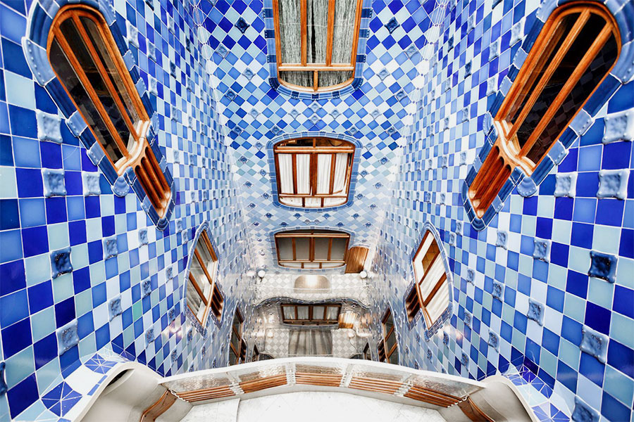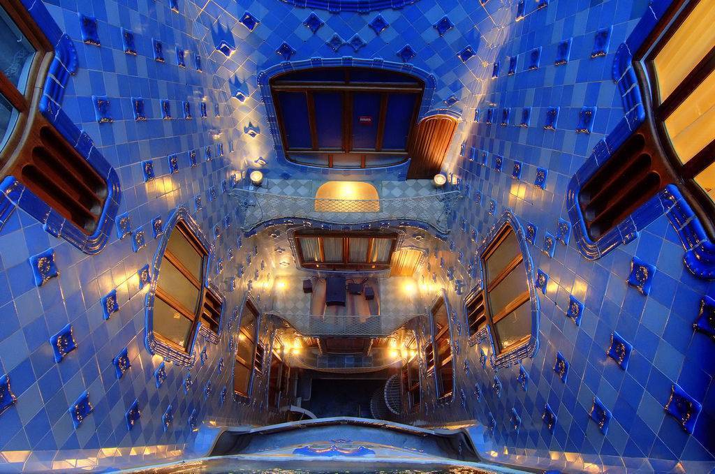 Гауди неспроста выбрал голубой, синий и белые цвета для облицовки «колодца». Разместив их от темного к светлому, мастер умело создает равномерное освещение.