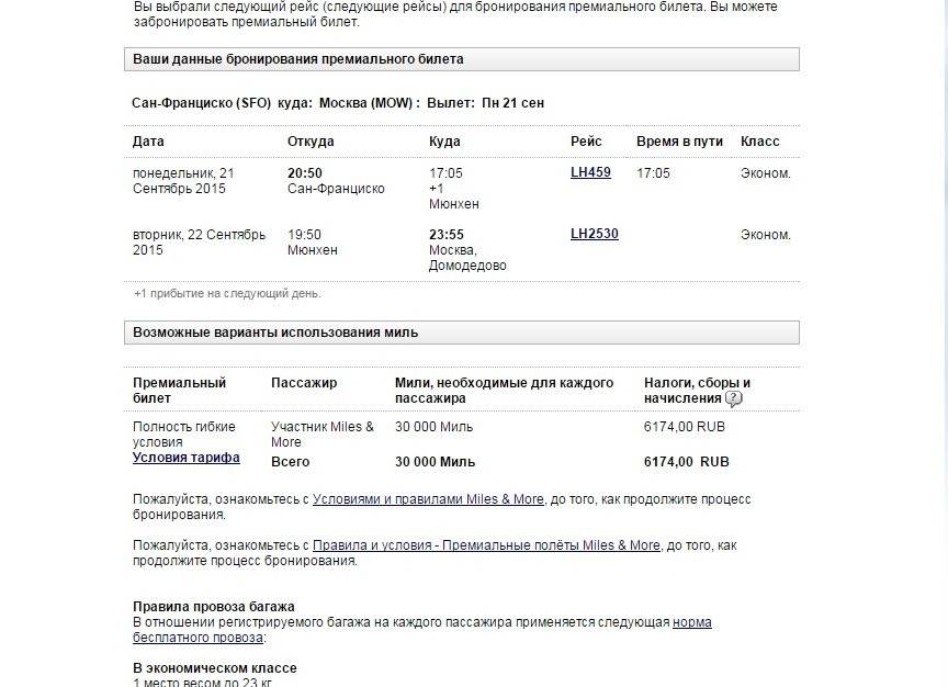 В некоторых других программах мы видим чуть более низкие цены на аналогичные маршруты, но цены Miles&More в целом являются адекватными, особенно учитывая возможность планировать перелет больше чем за две недели до желаемой даты вылета.