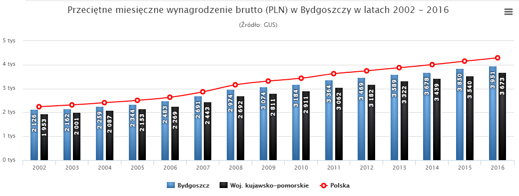 Средняя заработная плата в Быдгоще составляет примерно 3 950 злотых брутто.