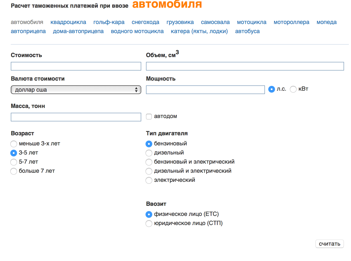Общая сумма расходов на то, чтобы ввезти, растаможить и полностью «легализовать» автомобиль в России зависит от мощности его двигателя, возраста автомобиля, его стоимости и того, кто его ввозит. Всего платежей несколько: