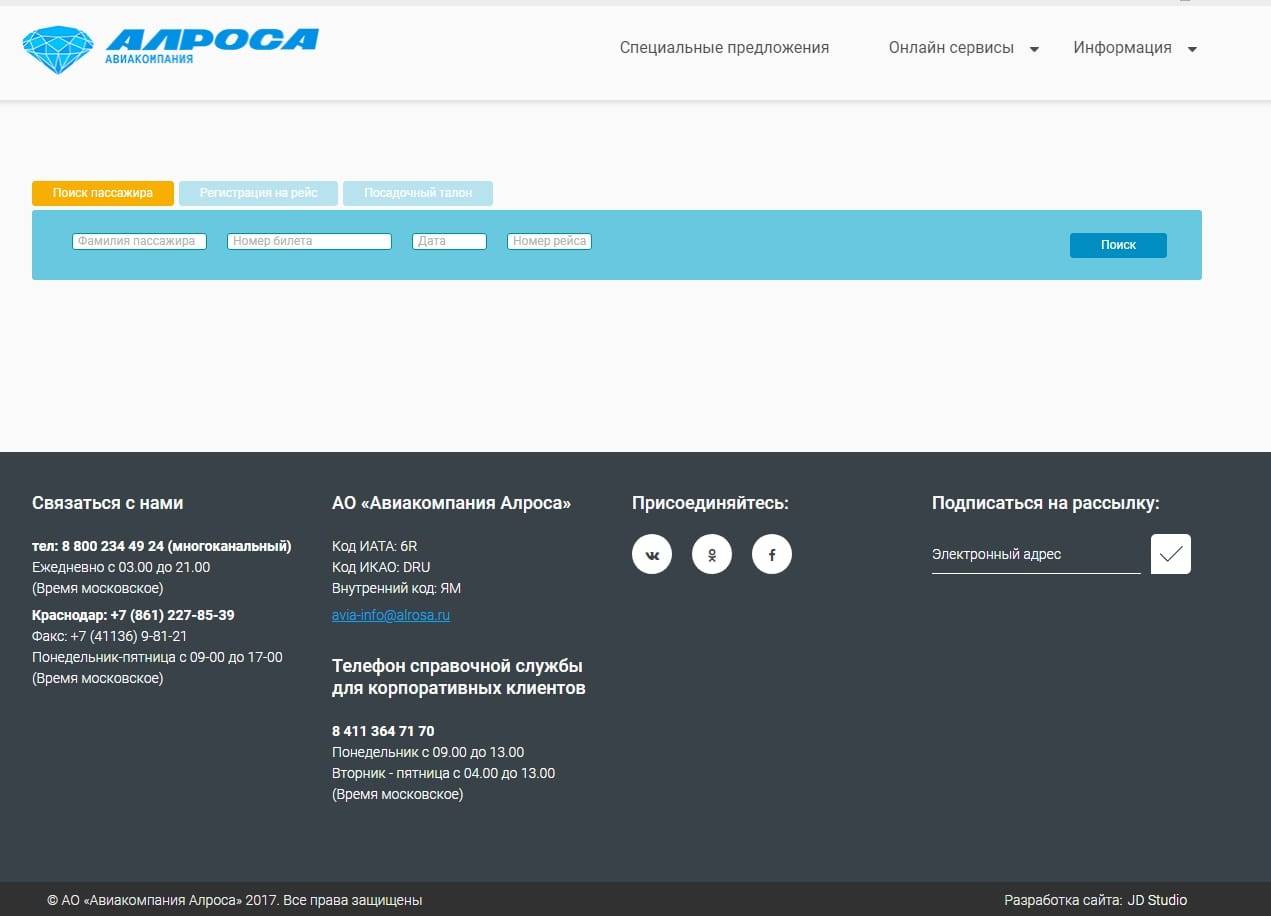 - онлайн-регистрация на рейсы авиакомпании «Алроса» начинается за 24 часа и заканчивается за 3 часа до вылета самолёта по расписанию;