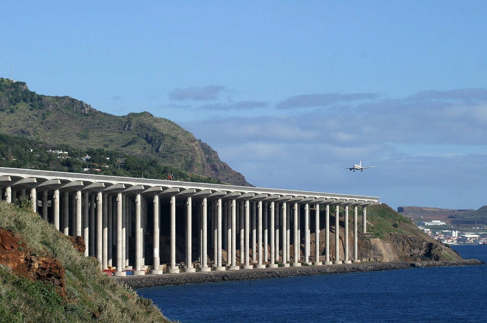 Проблемы со свободным местом возникли и в португальской Мадейре. Только здесь проектировщики были вынуждены пойти на еще более крутые меры. Пришлось возводить специальную эстакаду, что делает вид аэропорта не только впечатляющим, но и леденящим кровь пассажиров.