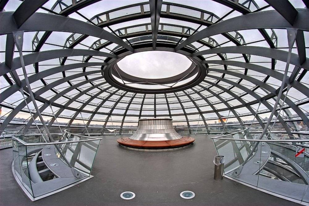 Купол весом 1200 тонн не только украшение, но и часть экоэнергосистемы здания. Внутри купола – конус из 360 зеркал в 30 рядов. С их помощью в зал парламента направляется дневной свет. Компьютерная программа регулирует наклон зеркал так, чтобы в любую погоду создавалось идеальное освещение.