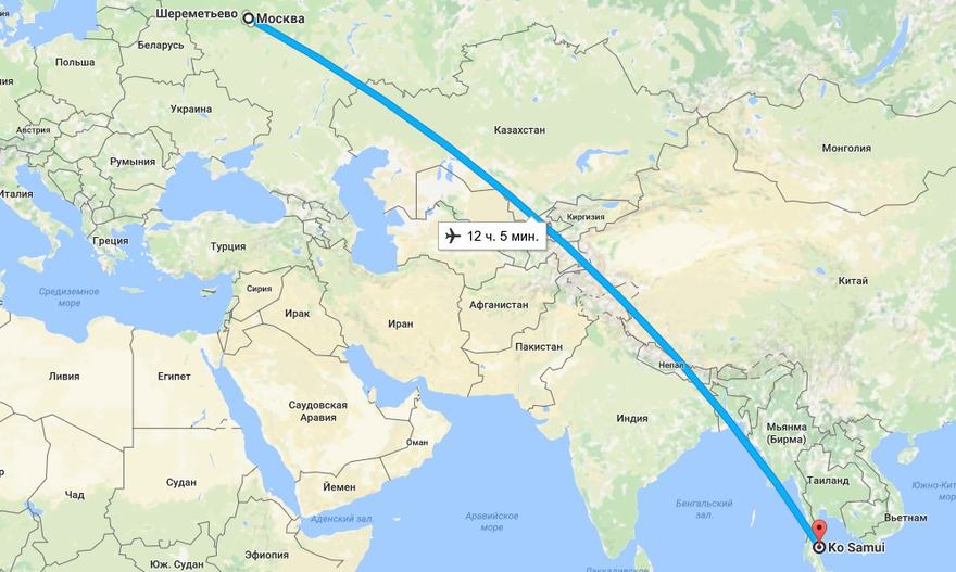 Прямым рейсом до самого известного острова Тайланда можно долететь за те же 9 с копейками часов.