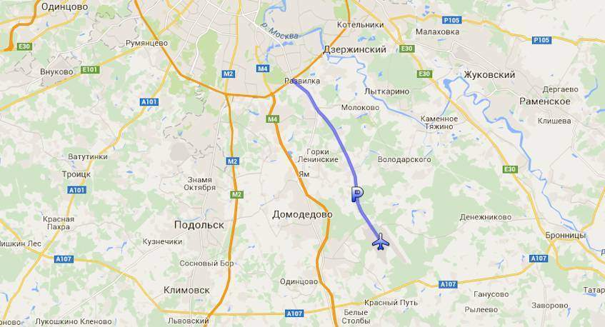Маршрут от МКАД до аэропорта Домодедово (открыть карту большего размера)