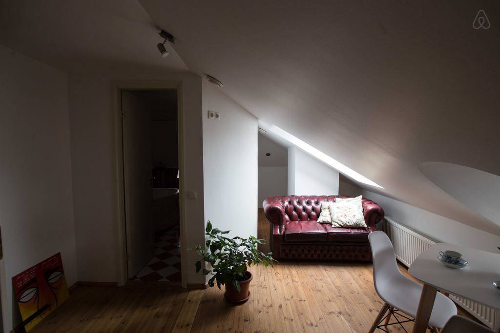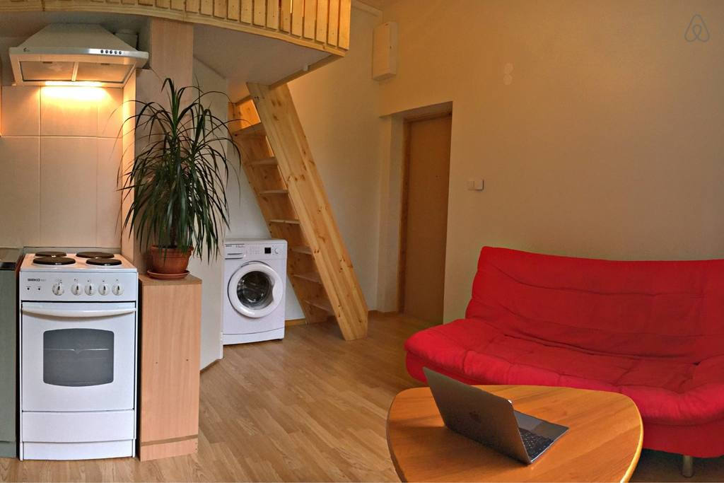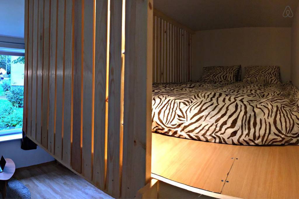 Небольшой лофт площадью 20 кв. м находится на 1 этаже и разделен на два уровня. Наверху расположена спальня, а внизу — кухня с плитой, стиральная машина, раскладной диван и ванная. Всего 10 минут пешком, и вы на берегу Балтийского моря!