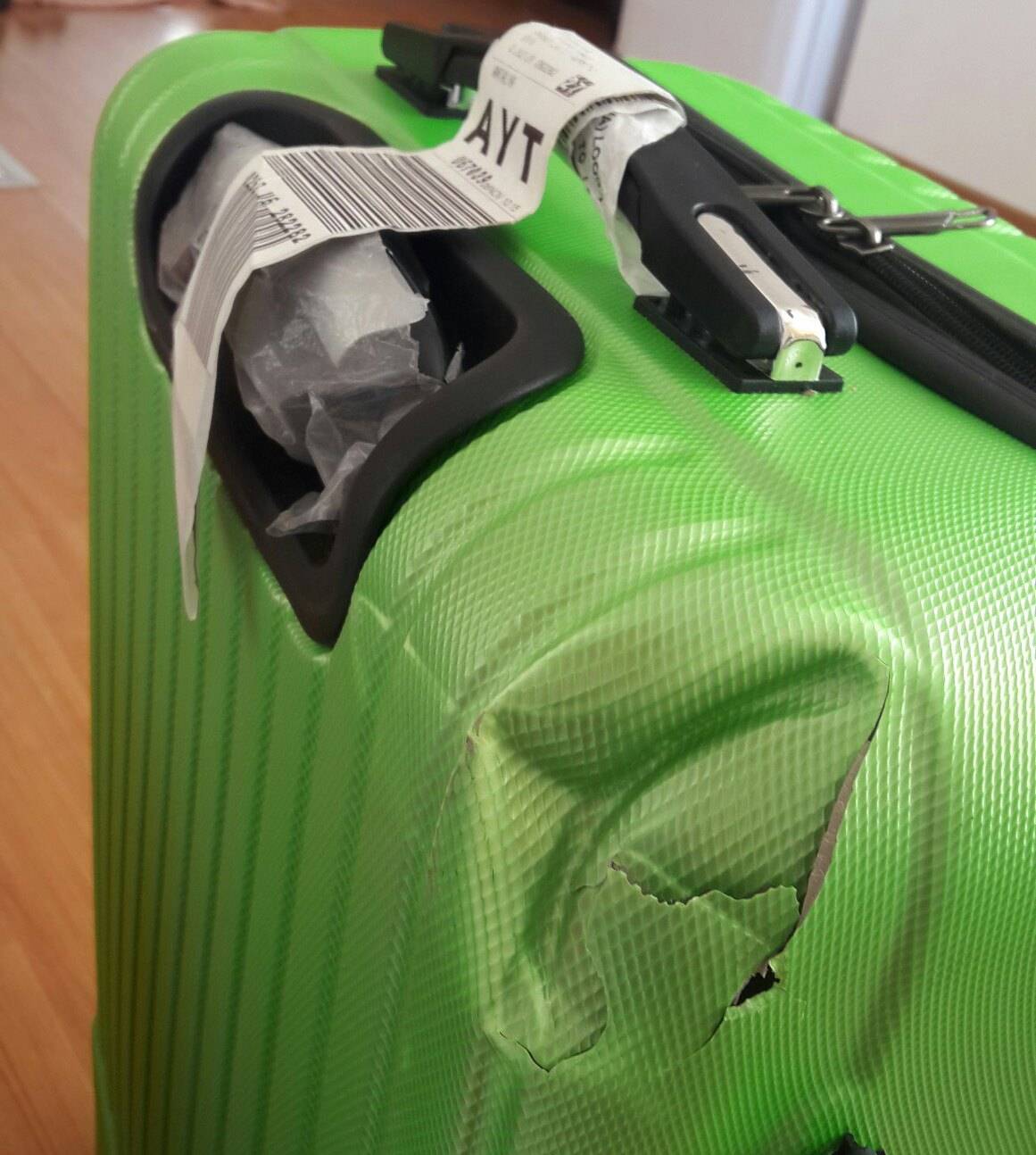- Дефекты на чемодане. Это могут быть сломанные колеса, ручки или замки. Также может быть деформирован или сломан корпус.