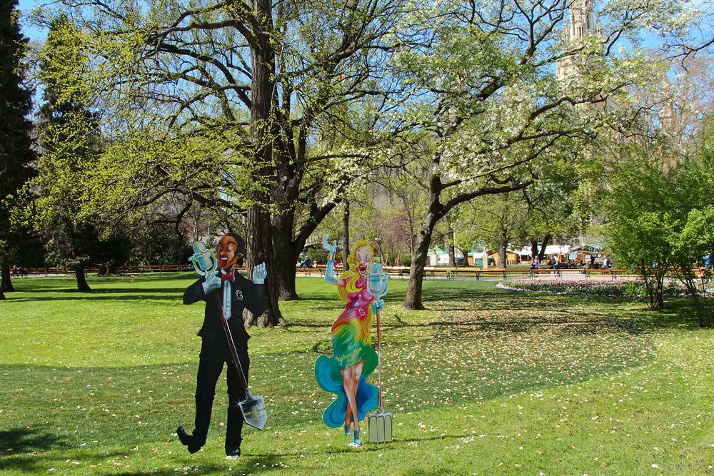 Да, еще именно в эти дни шли последние приготовления к конкурсу Евровидение 2015, который проходил именно в Вене. Вот такие картонные парочки тому свидетельство.