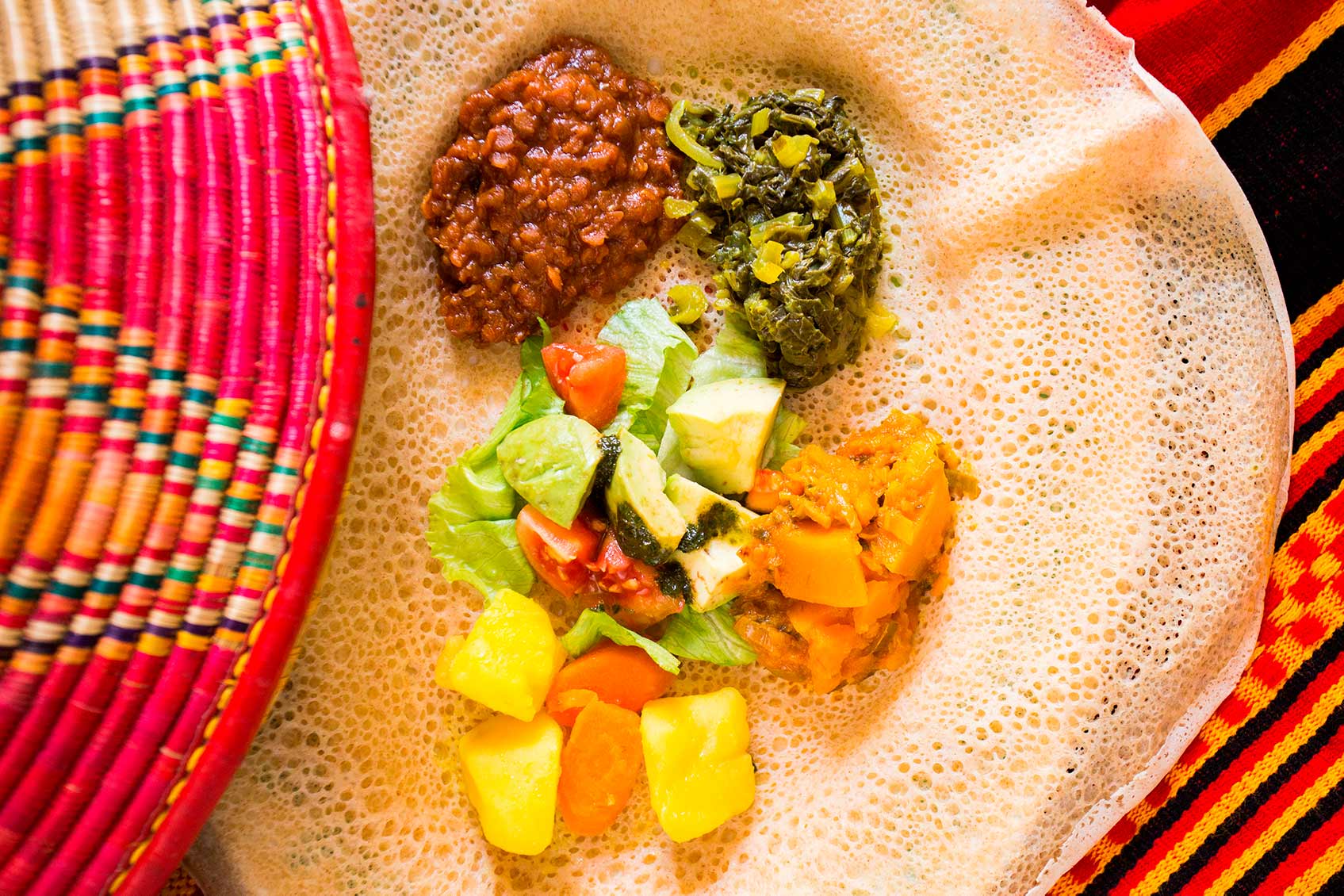Для рядового европейца эфиопская кухня покажется более чем экзотической. Традиционно во время еды не используются даже приборы и тарелки: пища сервируется в толстой тэффовой лепешке с кисловатым привкусом, ынджере. При приготовлении местной пищи и даже напитков используется огромное количество специй — они не только изменяют вкус еды, но и выступают в качестве обеззараживающего средства. В основном здесь готовят курицу, козлятину, баранину и говядину по праздником.