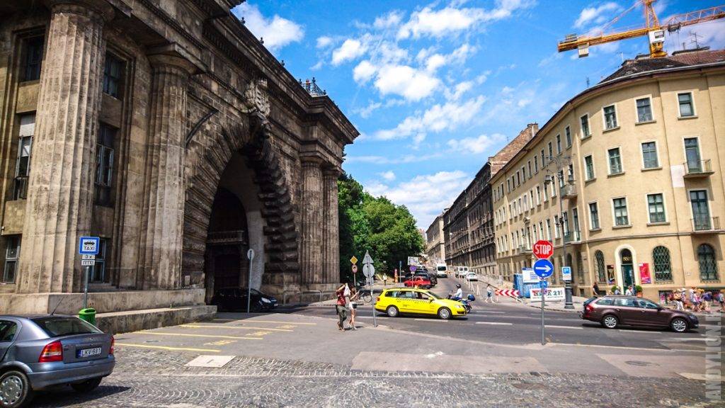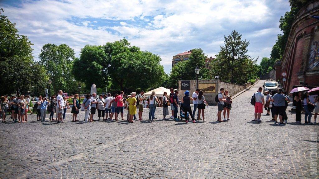 Ну, а мы сошли на остановке у фуникулера, на котором планировали подняться на Замковую гору к Будайской крепости. Сейчас здесь располагается начальная точка отсчета расстояний всех автомобильных дорог Венгрии — нулевой километр. Современная каменная скульптура была установлена в 1975 году.