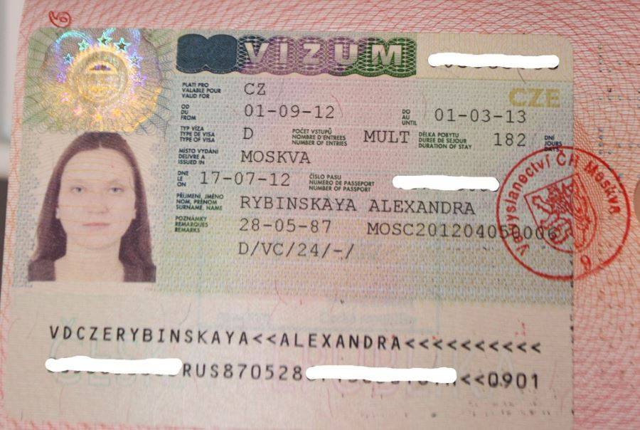 Национальная виза категории D на долгосрочное пребывание в Чехии.