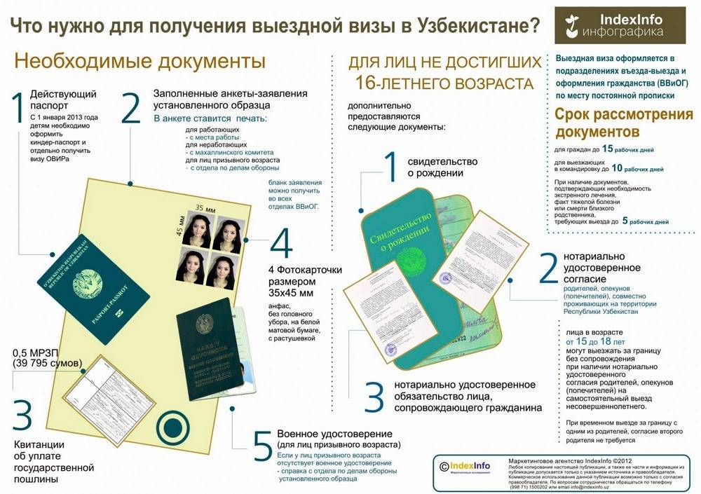 Перед выездом за рубеж каждый житель страны должен поставить по месту прописки стикер ОВИРа. Действителен в течение двух лет. Это обязательное условие, прописанное в правилах и порядке выезда за границу с территории Узбекистана. Если стикер не вклеить, то придется заплатить от 200 до 400 минимальных окладов в качестве штрафов.