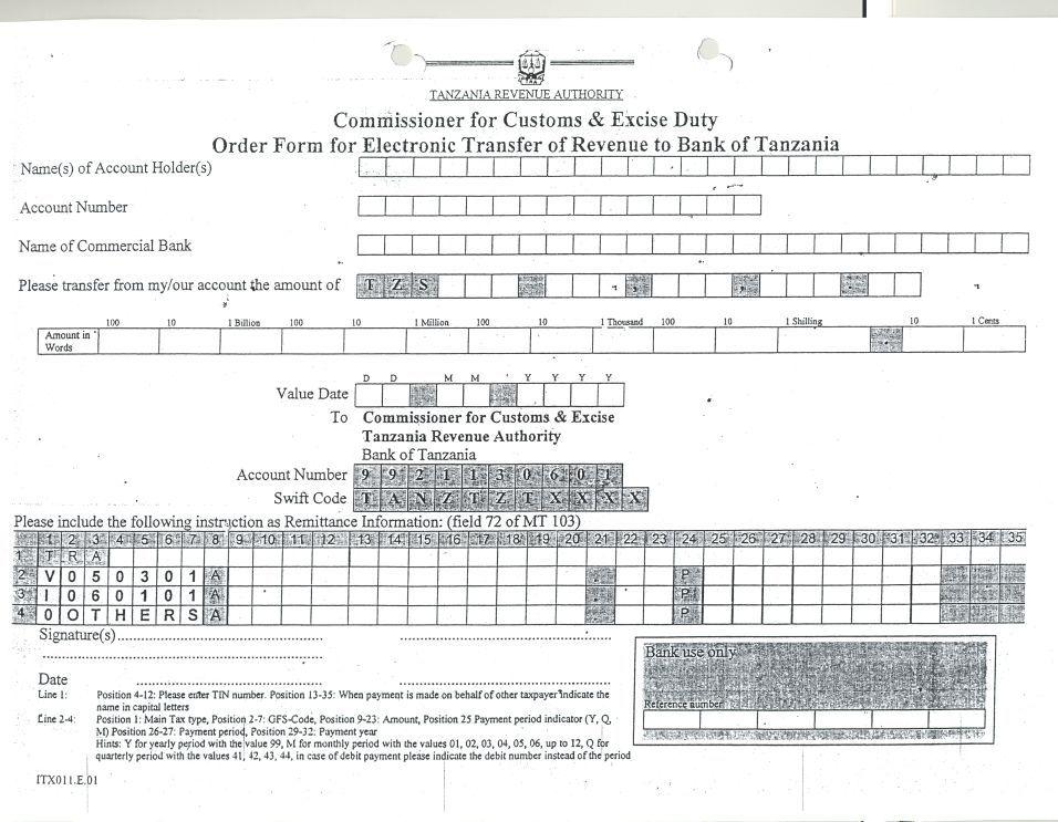 Оплата производится наличными или банковскими картами (платежные системы — Mastercard, Visa). Для получения визы необходимо заполнить специальную анкету, размещенную на официальном сайте посольства Танзании. Заявитель предоставляет следующие данные: