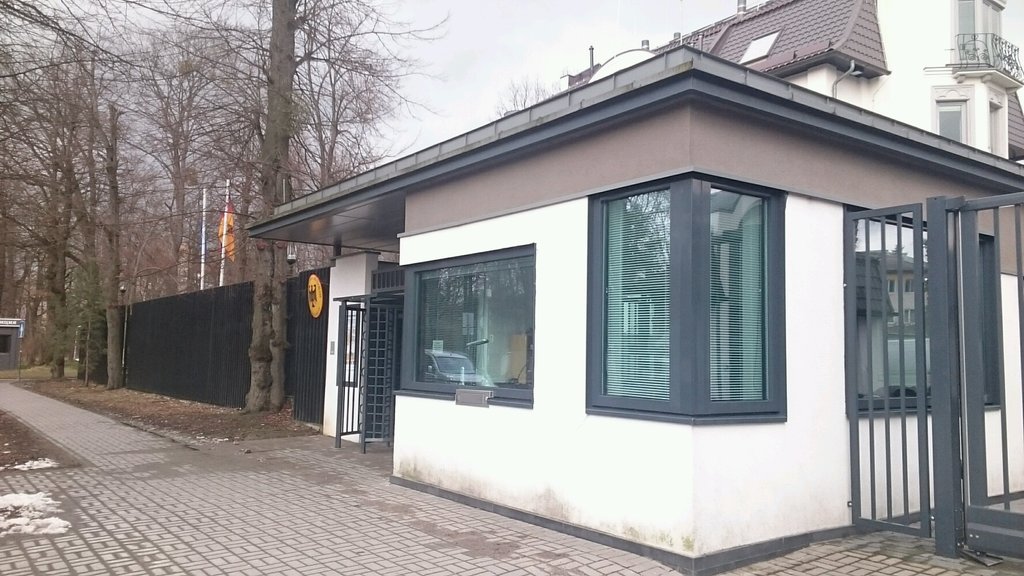 Время в пути (от автобусной остановки до посольства): примерно минут 10-15 (если без пробок, хотя там никогда не было прям сильных или даже средних пробок).