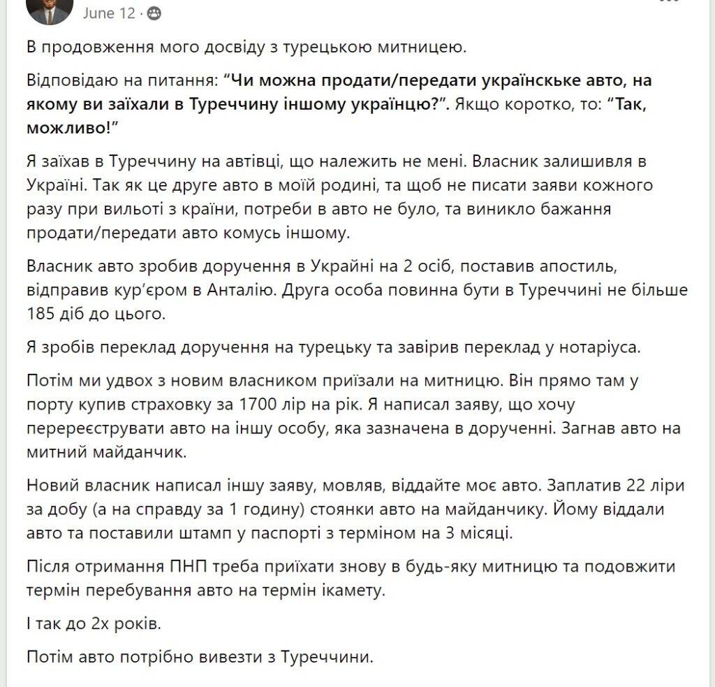 Отвечаю на вопрос: «Можно ли продать/передать украинское авто, на котором вы заехали в Турцию другому украинцу?». Если коротко, то: «Да, возможно!».