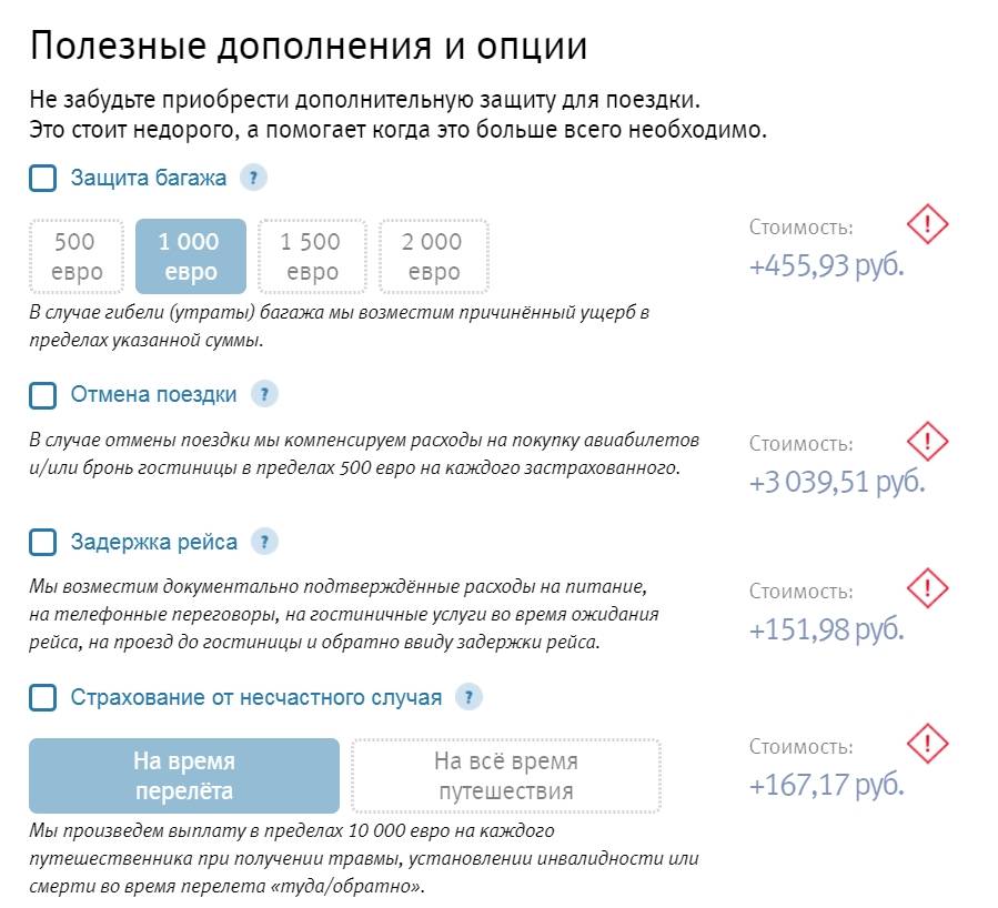 - плюс 10% к стоимости страховки на случай утери/порчи багажа;