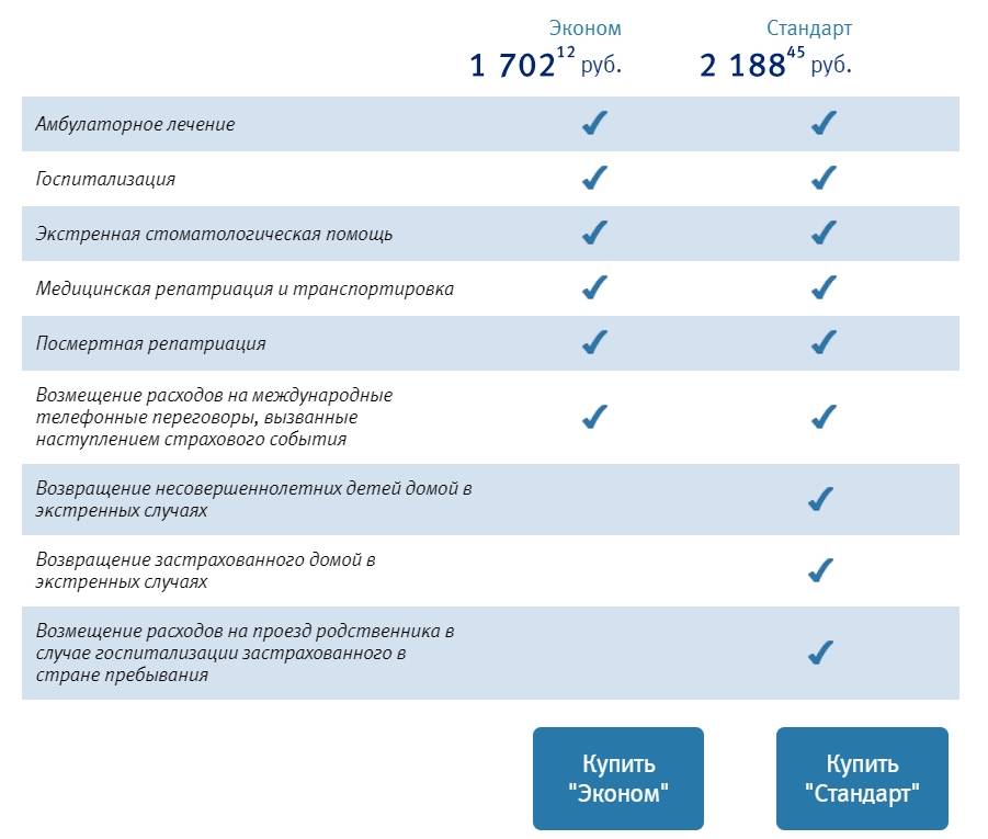 После останется только проверить условия, выбрать программу и кликнуть купить. Вашему вниманию будет не только цена, но и пакет рисков, которые будут оплачены по страховке в странах Шенгена.